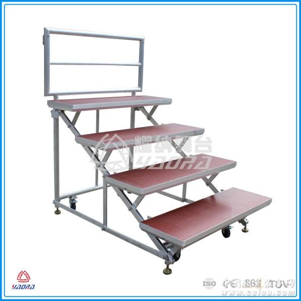 鋁合金折疊合唱臺: 鋁合金作為主材,輕巧緊固,安全性強。學校、合唱團專用合唱臺,堅固耐用,不用組裝。適用于禮堂,劇院的合唱表演,學校、黨政機關,大小中型企業組織的合唱表演。室內室外的團體畢業合影、歌唱比賽、合唱團的一些表演,可選擇鐵質,鋁合金,實木等材料。 產品優勢: ① 完全折疊帶輪,收放工作一個人可以全部完成 ② 臺階后背帶護欄,更有安全感。面板與支架不分開,層與層分開。運輸和存放較占空間 ③ 可以任意組合成各種形狀的唱臺 ④ 移動時無需搬運 ⑤ 鋁合金材質非常輕便,耐用堅固不生銹 產品參數: 尺寸:單組長1.22米,寬度0.3米-0.3米-0.4米,每層落差0.3米。可帶護欄,帶扶手。護欄高度0.8米,木板厚度3厘米左右。 折疊后尺寸,長2.6米,寬0.29米。一般可做2-4層。 每個平臺之間高度為25cm,整組寬度122cm. 面板:18mm厚防滑板,有黑色和紅色。 產品工藝細節: 鋁合金作為主材,每層平臺采用高強度防滑板輕巧緊固,安全性強。 鋁合金階梯框架的材質非常輕便,有耐用、堅固、不生銹等優點。 |