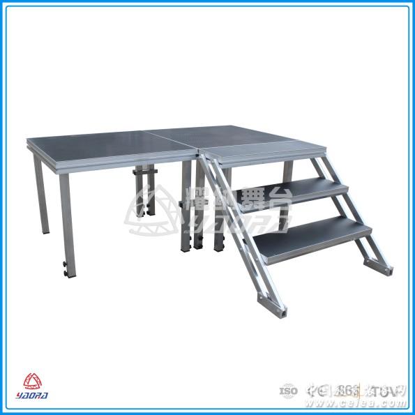 產(chǎn)品詳細介紹快裝舞臺: 這款舞臺簡潔實用,為國內(nèi)外演出行業(yè)使用最廣泛的舞臺,由舞臺面、舞臺立柱、舞臺升降管、可調(diào)節(jié)底座組成。搭建拆卸簡單快捷、外形美觀,適用于學校,酒店,演出公司,燈光音響演出設備租賃公司,燈光音響工程商,貿(mào)易經(jīng)銷商,文化事業(yè)單位,婚慶公司,多功能廳等。 產(chǎn)品優(yōu)勢: 1、拆裝方便快速,采用插銷式安裝,無需采用任何安裝工具,平均100平方,兩個人40分鐘可以搭建完畢。 2、最矮高度可達到15公分,填充了拼裝舞臺不能矮于30公分的 空白。 3、全向可拆,只有板子及舞臺插片占位置,舞臺支架全部可拆。 4、可調(diào)節(jié)高度:調(diào)節(jié)底座有兩種高度調(diào)節(jié)范圍, 另外可按客戶要求的不同高度定做。可調(diào)節(jié)高度也使快裝舞臺很好的解決了地面不平,上下樓梯等高矮不一等問題,調(diào)節(jié)原理同腳手架調(diào)節(jié)原理類似,但是調(diào)節(jié)旋鈕為加強型,比腳手架的調(diào)節(jié)旋鈕更粗,有更大的承重能力,是演出,展覽搭建舞臺最理想的器材之一。 5、可用18MM厚防水防滑面,也可以用鋼化玻璃舞臺或者有機玻璃面。 6、本公司還提供舞臺專用推車,輕松解決客戶煩惱搬運舞臺的問題。 7、攜帶更加方便,且鋁合金的不會生銹,便于永久使用,且易于蓄儲。 產(chǎn)品參數(shù): 常規(guī)尺寸是1.22*1.22m,其他尺寸有1.22*2.44m,1*1m,1*2m,(可根據(jù)客人特殊需求來訂做。也可以做成弧型,三角形,等特殊形及舞臺可以套上舞臺圍裙,顏色為紅色。) 面板厚度:18mm,滑板顏色:紅色,黑色等其他顏色。 常用小型活動的調(diào)節(jié)高度有:0.3~0.45m,0.4~0.6m,0.6~1m,而大型的演出有0.8-1.2m,1.2-1.5。 產(chǎn)品承重: 每平方舞臺可承受800公斤左右。 產(chǎn)品工藝細節(jié): 使用特殊開模具定做的鋁材。每一部分經(jīng)過精確設計,細節(jié)部分從方便及穩(wěn)固充分考慮。 舞臺與舞臺之間用卡扣聯(lián)接,牢固,美觀。周邊還可以圍成舞臺圍裙。 |